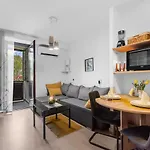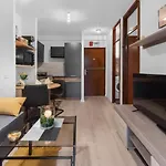 Die Unterkunft bietet einen Wohnbereich, einen Balkon und eine Küche und Annehmlichkeiten wie eine Klimaanlage und eine Waschmaschine. Das am Strand Apartment verfügt über eine getrennte Toilette und eine Dusche für Ihren Komfort. Außerdem finden Sie hier einen Haartrockner und Handtücher.